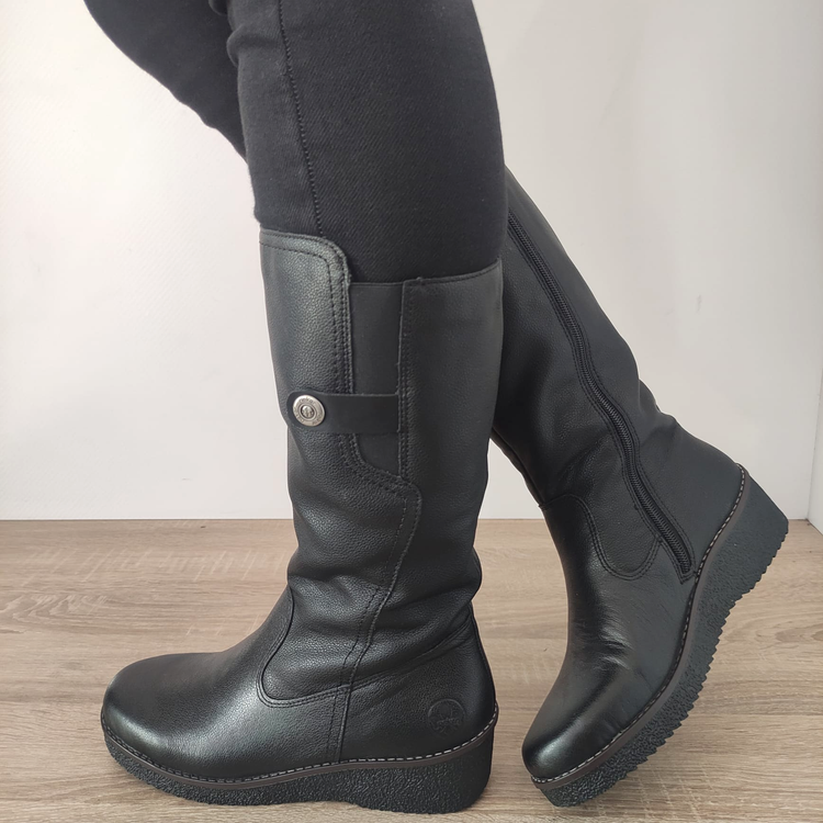Cizmele casual RIEKER pentru femei - perfecte pentru un look confortabil și stilat! Cu un material exterior combinat din piele naturală și piele ecologică, aceste cizme oferă o opțiune prietenoasă cu mediul înconjurător și un aspect elegant.