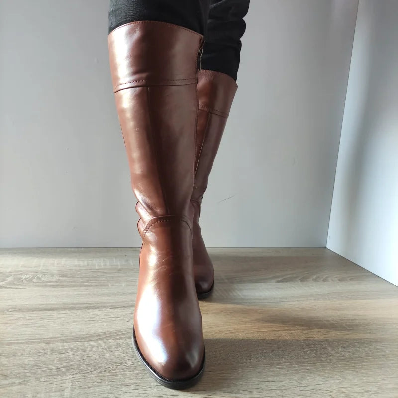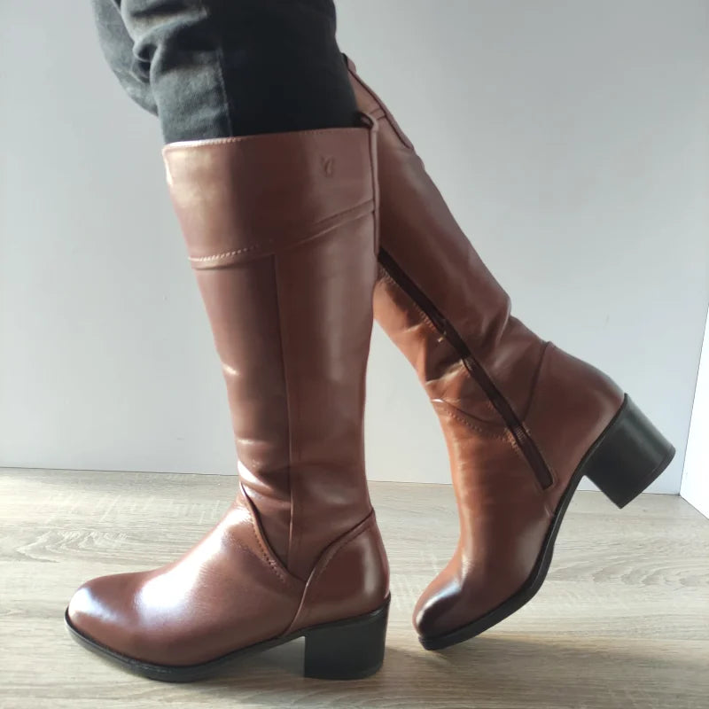 Cizme elegante de damă Caprice, confecționate din piele naturală de culoare maro coniac, ideale pentru un look sofisticat și rafinat în sezonul rece. Designul clasic și tocul stabil adaugă un plus de eleganță oricărei ținute.