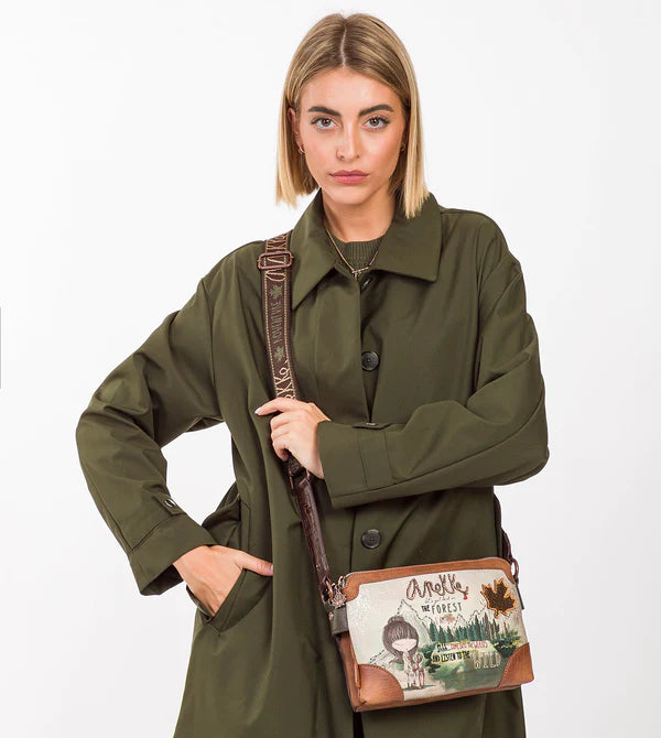 Aceastăgeantă de mesager cu două compartimente The Forestface parte din colecția inspirată denoua aventură a lui Anekke în Canada- o să-ți placă!