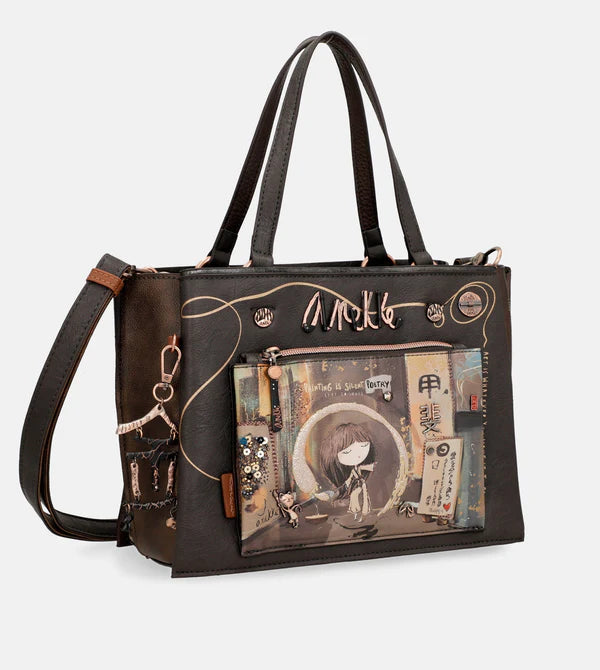 Bine ați venit într-o nouă călătorie prin lumea artei și în Japonia cu acest geanta maro pentru umăr de la Anekke Shōen.