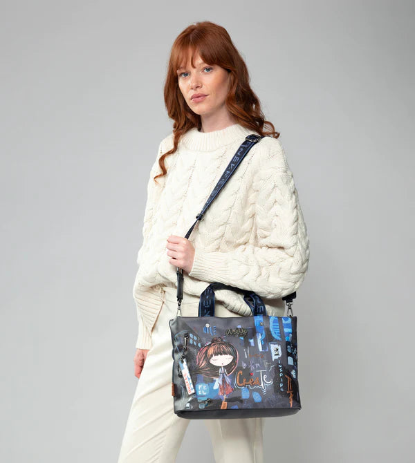 Această geantă Anekke Contemporary va deveni noul tău inseparabil. Este o cutie confortabila cu material flexibil, care imbina fata imprimata cu spatele inspirat din tehnica origami. Este de dimensiuni medii-mare, are inchidere cu fermoar, captuseala si buzunare. Mânerul este reglabil, astfel încât îl puteți adapta oricând la lungimea pe care o preferați.