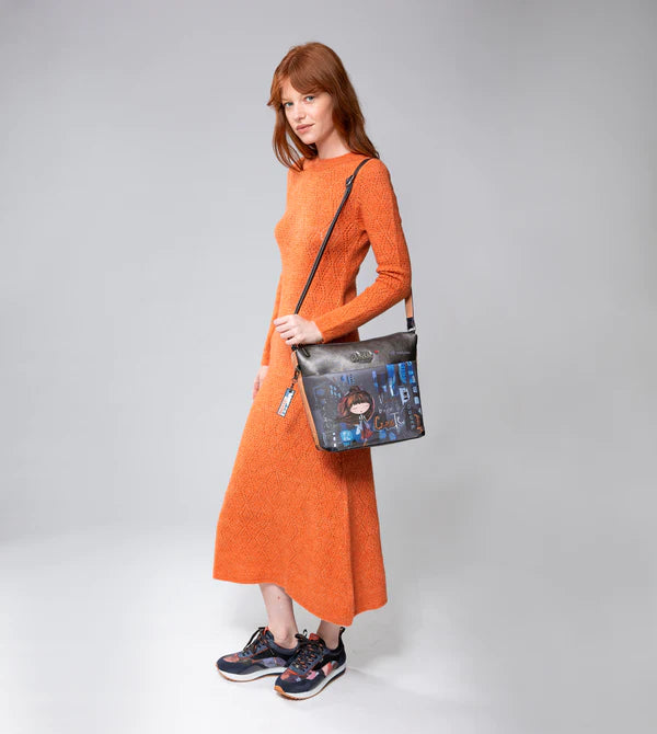 Această geantă mare imprimată face parte din gama Anekke Contemporary.Are o capacitate interioară mare, precum și căptușeală și buzunare.Are si buzunare exterioare in fata si in spate.Mânerul este reglabil, astfel încât îl puteți adapta oricând la lungimea pe care o preferați.