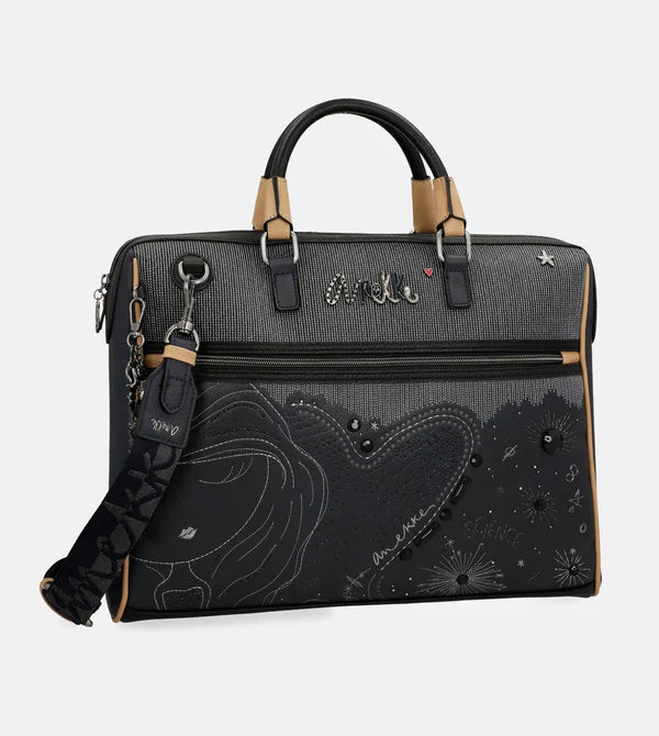 Acesta este un suport pentru documente de dimensiuni mari, cu buzunare în față și în spate. Are două mânere și o curea de umăr reglabilă detașabilă. Cureaua de umar este reversibila, cu o broderie diferita pe fiecare parte. Interiorul este captusit si are buzunare. În plus, este căptușită pentru a vă proteja dispozitivele electronice și are compartimente astfel încât să puteți organiza totul așa cum doriți. Pe spate sunt două fermoare care, atunci când sunt deschise, fac posibilă adaptarea acestuia la un cărucior, astfel încât să-l poți lua cu tine atunci când călătorești.