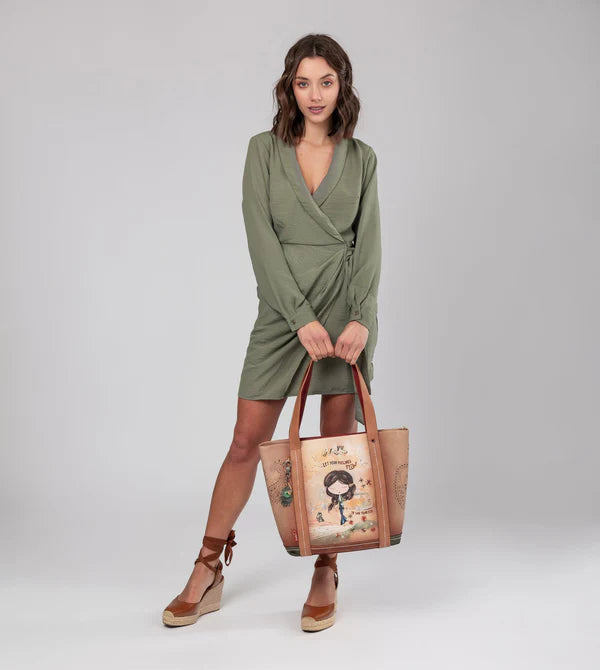 Ești gata să călătorești în vara dragostei cu Anekke Peace & Love? Începem o călătorie unică în care vei avea nevoie doar de două lucruri: imaginație și niște flori în păr. Furgoneta lui Anekke decolează, așa că începem să călătorim pe Coasta de Vest a SUA într-o epocă unică: anii 60. Sub un soare cald și cu muzică, libertate și vise care vibrează sus, ne vom opri în Los Angeles, San Francisco și San Diego, pentru a experimenta mișcarea hippie din interior. Pregătește-te să te cufunzi într-o poveste unică prin fiecare detaliu al colecției: ace, broderii, forme tăiate și imprimeuri care ne vor readuce la această mișcare culturală. Veți găsi, de asemenea, patch-uri 100% personalizate și mesaje de împuternicire care vă vor face să curgeți. Această piesă face parte din linia de culoare cămilă, care combină nuanțe verzi, nud și roșiatice.