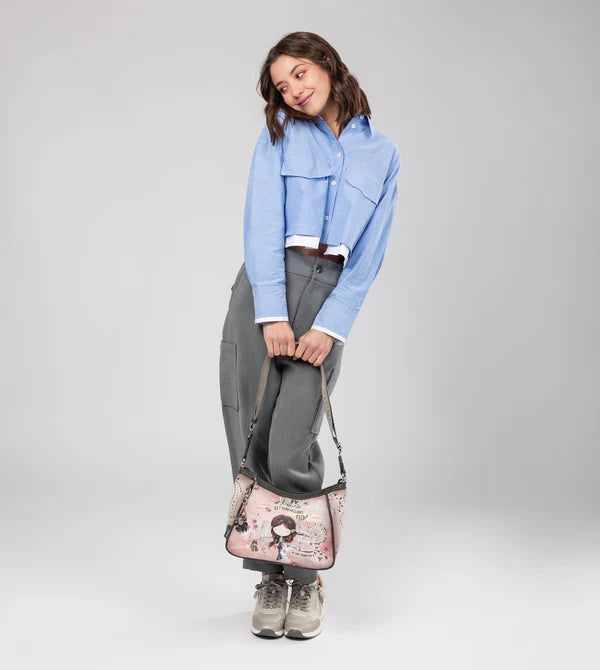 Ești gata să călătorești în vara dragostei cu Anekke Peace & Love? Incepem o calatorie unica in care vei avea nevoie doar de doua lucruri: imaginatie si cateva flori in par. Furgoneta lui Anekke decolează, așa că începem să călătorim pe Coasta de Vest a SUA într-o epocă unică: anii 60. Sub un soare cald și cu muzică, libertate și vise care vibrează sus, ne vom opri în Los Angeles, San Francisco și San Diego, pentru a experimenta mișcarea hippie din interior. Pregătește-te să te cufunzi într-o poveste unică prin fiecare detaliu al colecției: ace, broderii, forme tăiate și imprimeuri care ne vor readuce la această mișcare culturală. Veți găsi, de asemenea, patch-uri 100% personalizate și mesaje de împuternicire care vă vor face să curgeți. Această piesă face parte din linia roz, care se combină cu nuanțe de ecru, gri și negru.