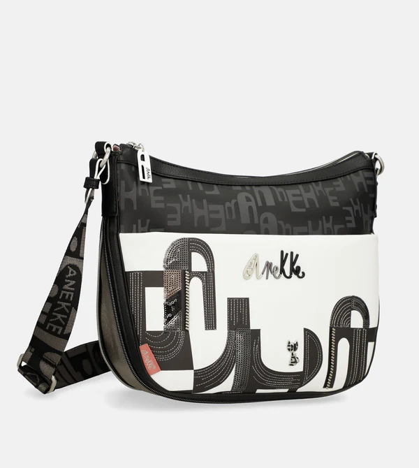 Bun venit în vara dragostei cu Anekke! Această geantă face parte din capsula Anekke Nature Sixties, realizată cu 80% material reciclat și 100% dragoste pentru Planetă. Materialul folosit este fabricat din capace din plastic reciclat și poartă sigiliul Control Union Certifications BV. În plus, această geantă are o poveste unică în spatele designului său! Capsula Nature Sixties este inspirată din legendarul cartier Haight-Ashbury din San Francisco, care a fost considerat epicentrul vieții moderne în anii 60 și locul de naștere al mișcării hippie. Unii dintre cei mai renumiți artiști ai acestei epoci și-au început cariera în acest loc. Celebrele sale case și străzi colorate inspiră formele geometrice ale fiecărui model din această capsulă alb-negru. Materialul flexibil si confortul produsului sunt completate de sute de detalii care te vor transporta in istoria acestui cartier legendar, cu produse pline de detalii in broderie, ace, aplicatii, tragere si manere personalizate.