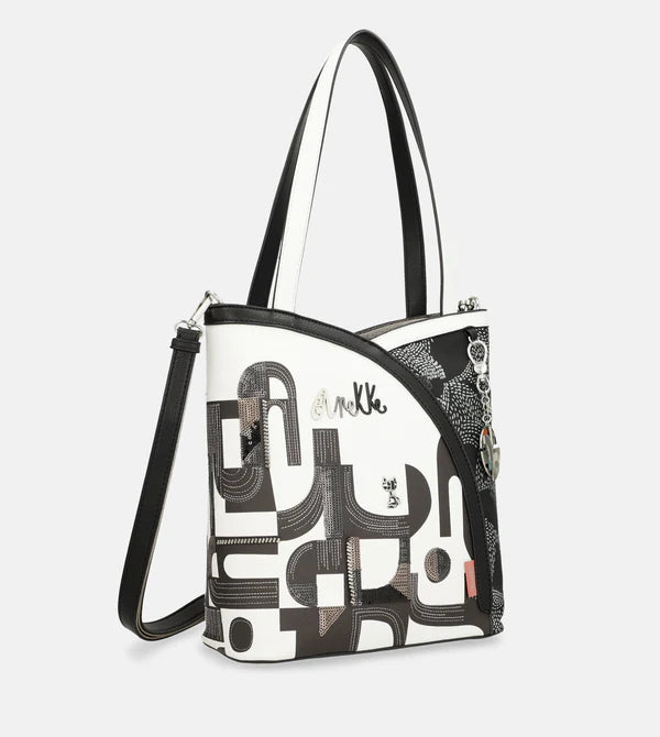 Bun venit în vara dragostei cu Anekke! Această geantă face parte din capsula Anekke Nature Sixties, realizată cu 80% material reciclat și 100% dragoste pentru Planetă. Materialul folosit este fabricat din capace din plastic reciclat și poartă sigiliul Control Union Certifications BV. În plus, această geantă are o poveste unică în spatele designului său! Capsula Nature Sixties este inspirată din legendarul cartier Haight-Ashbury din San Francisco, care a fost considerat epicentrul vieții moderne în anii 60 și locul de naștere al mișcării hippie. Unii dintre cei mai renumiți artiști ai acestei epoci și-au început cariera în acest loc. Celebrele sale case și străzi colorate inspiră formele geometrice ale fiecărui model din această capsulă alb-negru. Materialul flexibil si confortul produsului sunt completate de sute de detalii care te vor transporta in istoria acestui cartier legendar, cu produse pline de detalii in broderie, ace, aplicatii, tragere si manere personalizate.