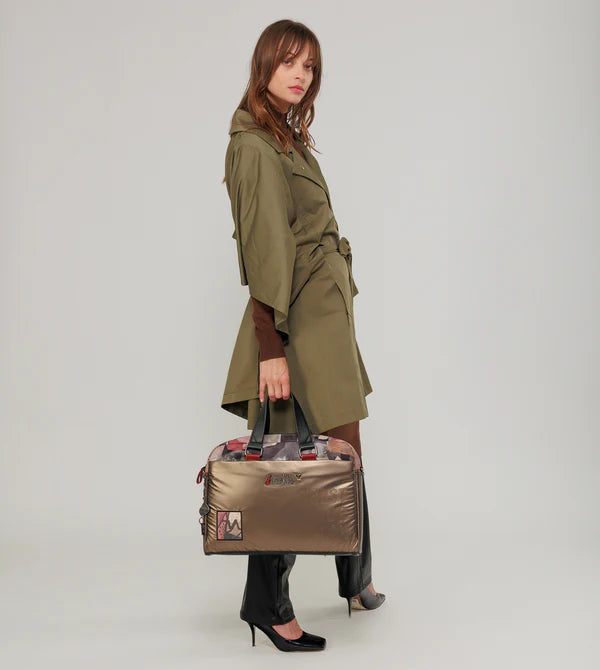 Acest suport pentru documente va fi obiectul tău inseparabil atunci când mergi la serviciu sau la curs. Interiorul său are căptușeală moale pentru a vă proteja computerul, precum și mai multe compartimente pentru a menține totul organizat. Când vine vorba de utilizare, tu alegi cum! Cele două mânere ale sale vă vor permite să-l folosiți ca servietă, în timp ce cureaua de umăr detașabilă și reglabilă vă va oferi opțiunea de a o atârna. Pe spate are doua fermoare care, atunci cand sunt deschise, iti vor permite sa-l adaptezi la un carucior pentru a-l transporta mai confortabil daca vei calatori.