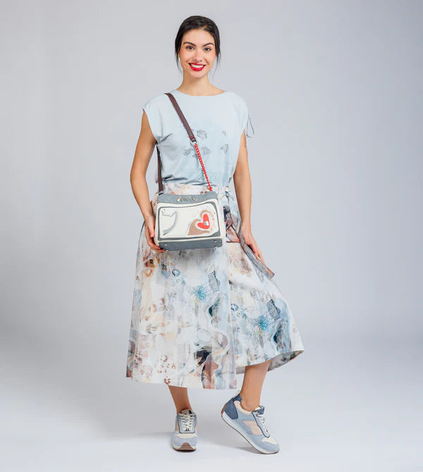 Această geantă crossbody originală îți oferă versatilitate pentru orice ocazie: o poți purta cu mânerul scurt tip lanț sau ca geantă de umăr, folosind cureaua reglabilă, ajustabilă la diferite lungimi. Designul său ingenios oferă un interior spațios, complet căptușit și dotat cu buzunare pentru un plus de confort, precum și un buzunar exterior la spate.