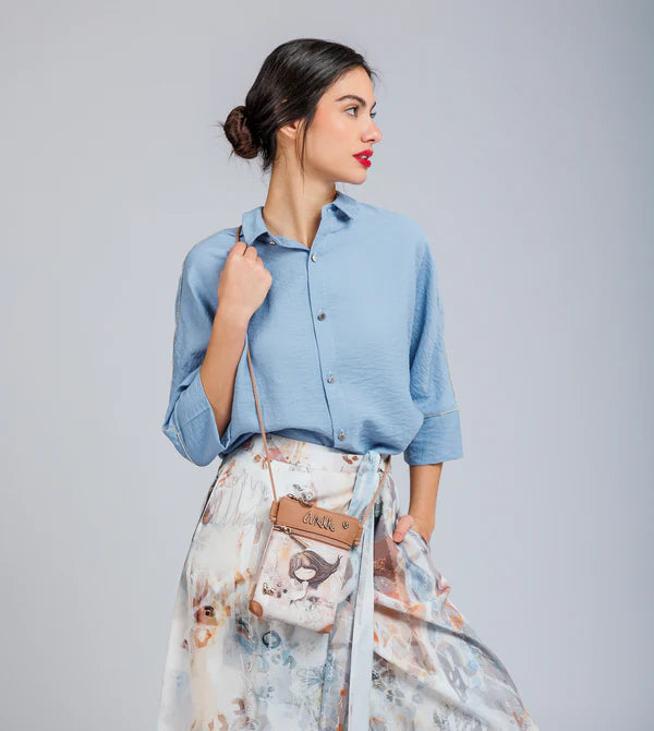 Această geantă crossbody de dimensiune mică este practică și versatilă, având buzunare atât în partea din față, cât și în cea din spate. Cureaua din bumbac, în stil cordon, oferă un plus de confort și un aspect modern. Interiorul este căptușit cu un material imprimat original, inspirat din colecție.