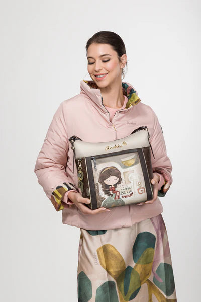 Geanta Anekke Muse Medium Crossbody este un accesoriu elegant și practic, inspirat din universul artistic al colecției Muse. Ilustrația frontală cu personajul iconic Anekke și mesajul “Know Yourself” oferă genții un caracter expresiv, evocând ideea de inspirație și autocunoaștere specifică tematicii colecției.