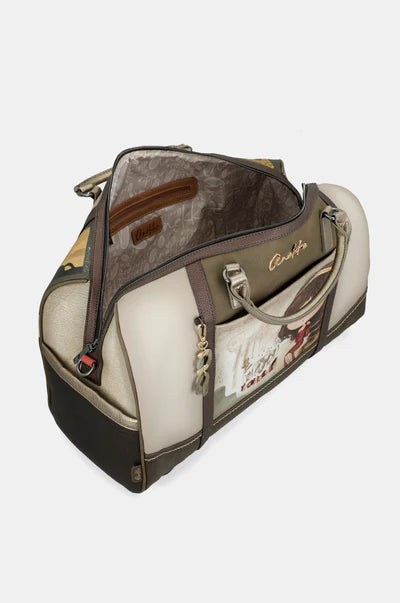 Geanta Anekke Muse 42708-423 este un model de dimensiuni mari, conceput pentru transport eficient și organizare clară în deplasări. Designul integrează ilustrația specifică Anekke cu elemente inspirate din arta clasică, în nuanțe de crem și maro.
