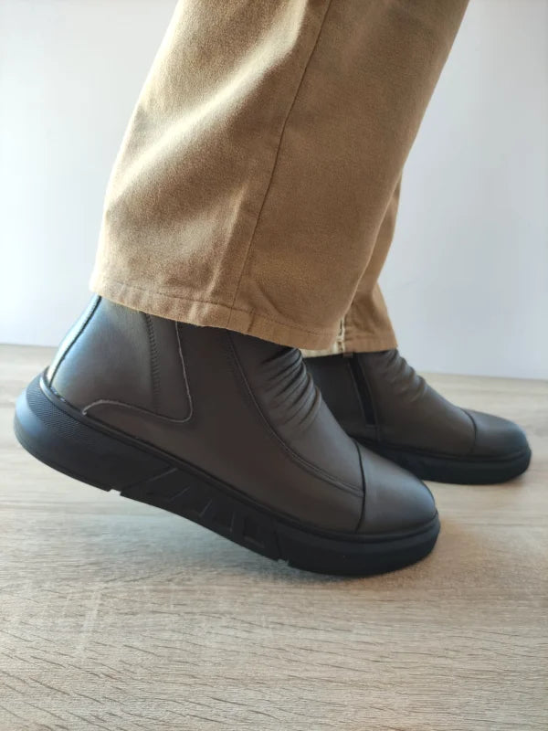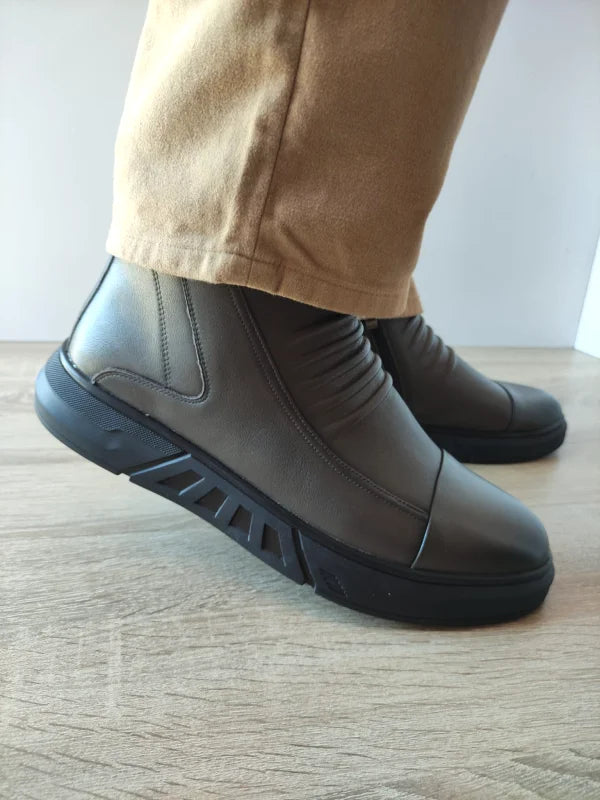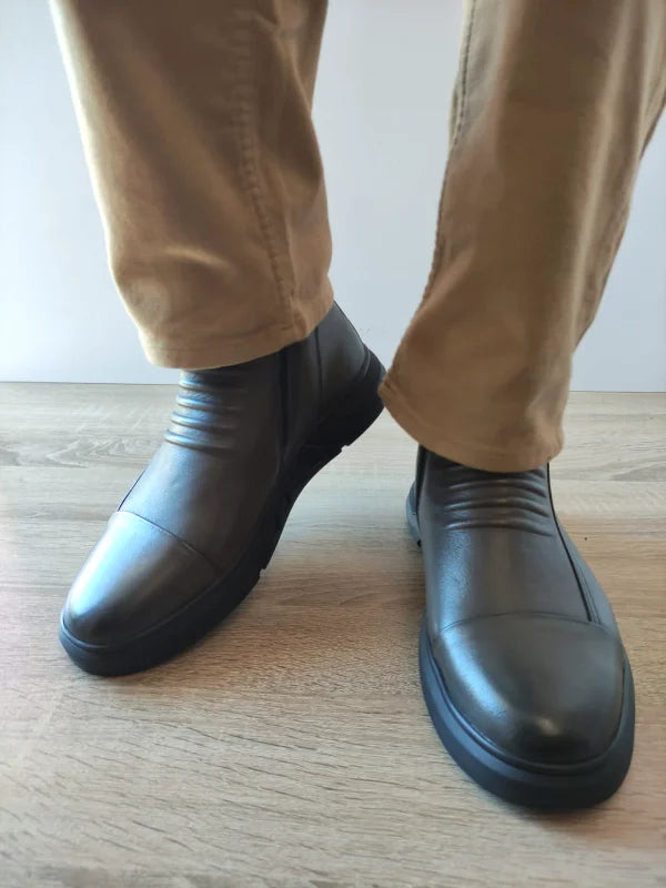 Concepute pentru confort și funcționalitate, aceste ghete au fermoar lateral pentru o încălțare rapidă și comodă, iar talpa robustă, cu grosime de 4 cm la spate, asigură stabilitate și protecție în sezonul rece. Înălțimea de 14 cm oferă susținere gleznei și un aspect impunător, perfect pentru ținutele casual de iarnă.