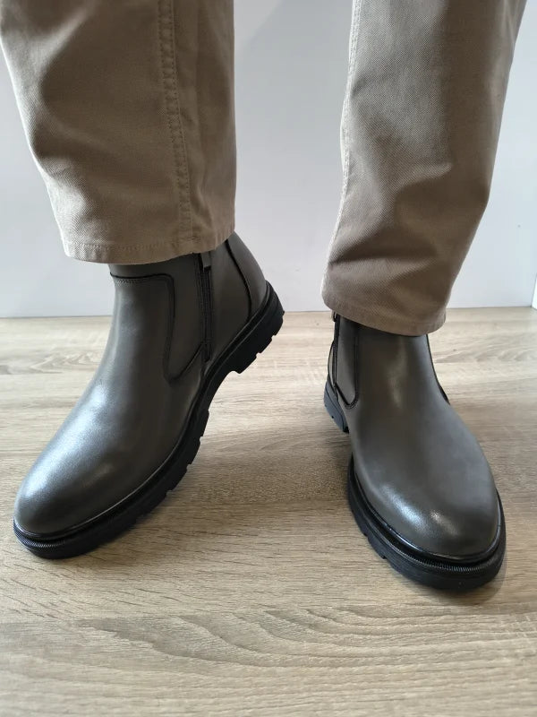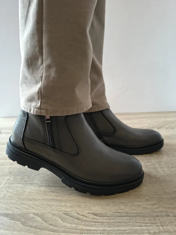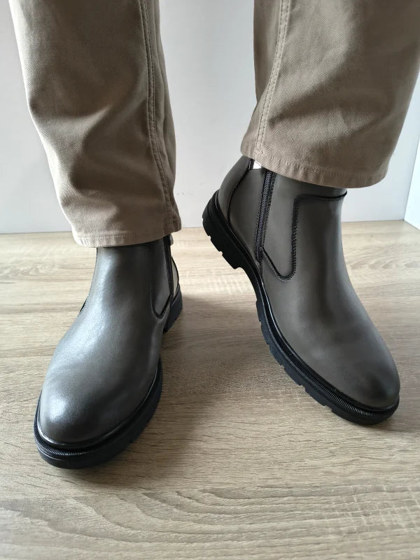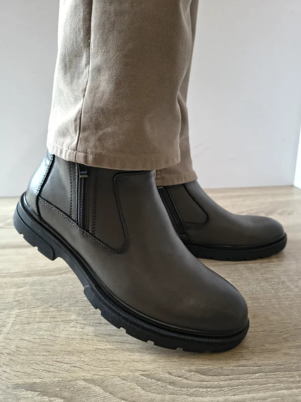 Aceste ghete Otter din piele naturală oferă un echilibru perfect între stil și funcționalitate. Culoarea gri adaugă o notă modernă, iar cele două fermoare laterale asigură o încălțare rapidă și comodă. Talpa flexibilă și rezistentă oferă confort pe tot parcursul zilei, făcându-le potrivite pentru purtare zilnică în sezonul rece.