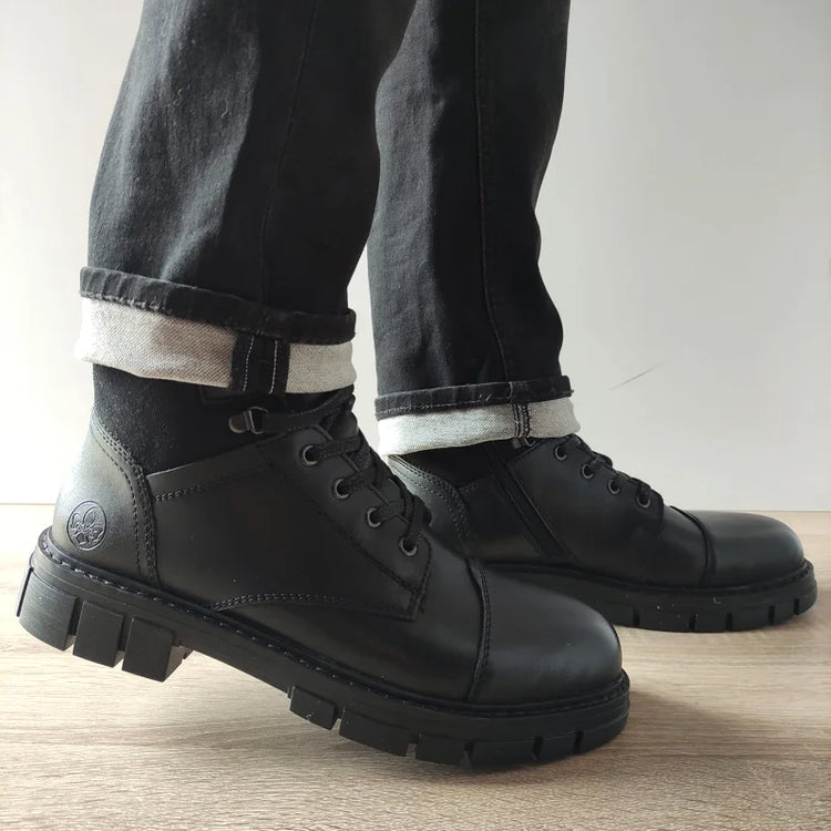Ghete casual pentru bărbați, marca Rieker, realizate dintr-o combinație depiele naturalășipiele ecologică, cu un design robust și modern. Aceste ghete sunt perfecte pentru sezonul rece, oferind confort și protecție.