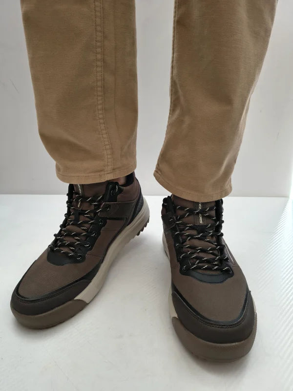 Caracteristici: Brand: Skechers Model: 237726 BRN Material exterior: Piele naturală + textil Culoare: Maro Înălțime totală a pantofului: 12.5 cm Grosimea tălpii (la spate): 3.5 cm Tip închidere: Șireturi Tehnologii: Memory Foam, Waterproof, Breathable Stil: Ghete casual