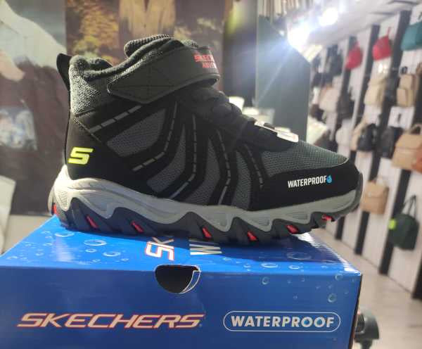 Cu aceste ghete Skechers, micuții pot explora în siguranță indiferent de vreme! Designul modern, în negru cu accente roșii și gri, este completat de funcționalitatea Waterproof, care menține picioarele uscate chiar și în zile ploioase sau pe teren umed.
