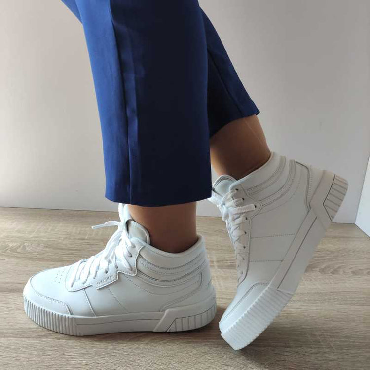 Această pereche de ghete casual pentru adolescenți de la Skechers, modelul 185094 WHT, este confecționată din piele ecologică de culoare albă. Ghetele au un design sportiv și modern, fiind potrivite pentru sezonul toamnă 2024. Caracteristicile cheie includ: