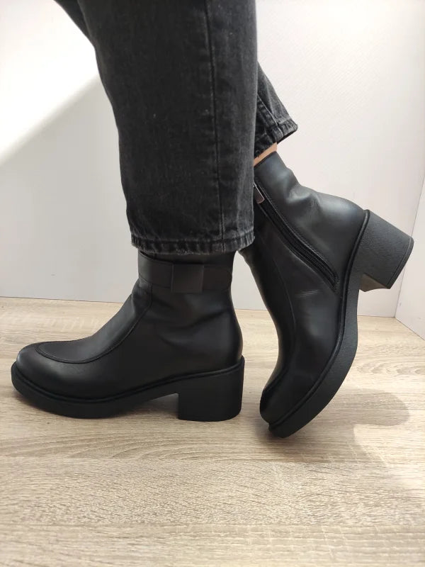 Modelul este prevăzut cu fermoar lateral pentru încălțare rapidă, iar tocul gros adaugă stabilitate și un plus de înălțime. Cu o înălțime totală de 19,5 cm și un toc de 6 cm, aceste ghete oferă echilibrul perfect între funcționalitate și feminitate.