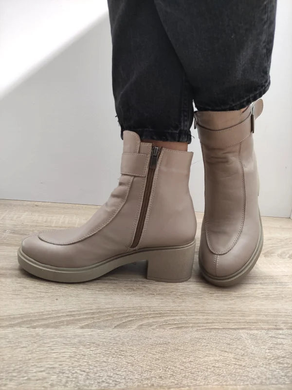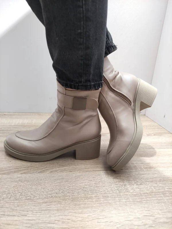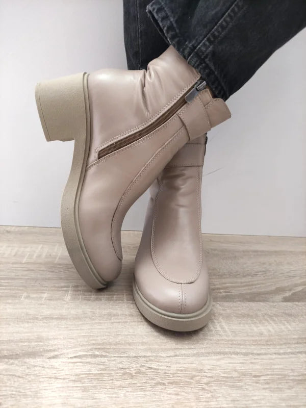 Modelul este prevăzut cu fermoar lateral pentru încălțare rapidă și comodă, iar designul simplu este pus în valoare de tocul solid. Cu o înălțime totală de 19,5 cm și un toc de 6 cm, aceste ghete oferă stabilitate, confort și un plus de înălțime, fără a compromite lejeritatea la purtare.