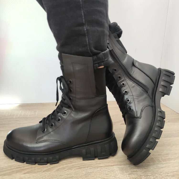Descriere: Ghete casual de damă marca Dogati, confecționate din piele naturală de calitate, în nuanța neagră. Aceste ghete impresionează prin designul robust și talpa adânc profilată, ideală pentru stabilitate și confort. Fermoarul lateral permite o încălțare ușoară, fiind perfect pentru un look urban cu atitudine.