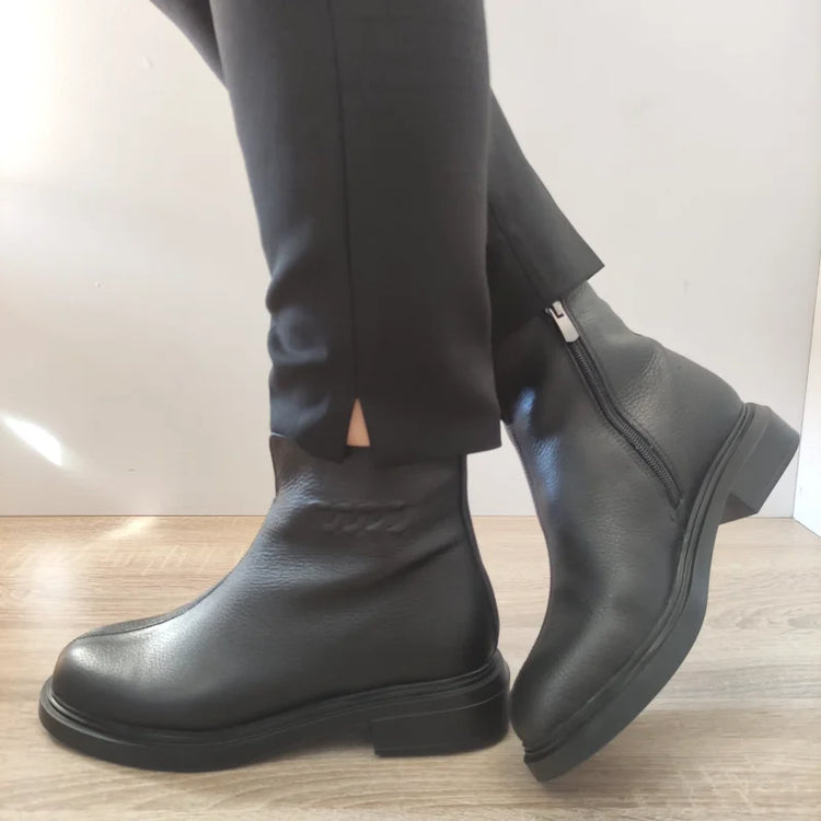 Ghete casual de damă marca Dogati, realizate din piele naturală, în nuanța neagră. Aceste ghete au un design simplu și versatil, perfect pentru o ținută de zi cu zi. Fermoarul lateral facilitează încălțarea, iar talpa de 3.5 cm oferă confort și stabilitate, fiind ideale pentru un stil casual și modern.