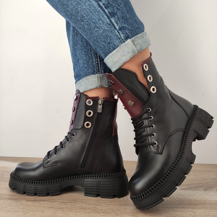 Redefinește-ți stilul cu noile ghete casual DOGATI 5781, special create pentru femeile care își doresc un look îndrăzneț și sofisticat. Realizate din piele naturală de înaltă calitate, aceste ghete combina durabilitatea cu eleganța. Designul lor unic, cu inserții de culoare burgundie și detalii metalice, se potrivește perfect cu ținutele casual sau cu cele de seară.