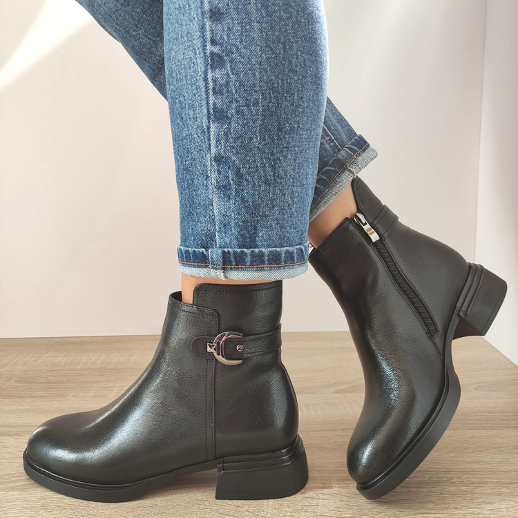 Închiderea pe bază de fermoar nu numai că adaugă un detaliu estetic deosebit, dar și facilitează procesul de încălțare și descălțare, asigurând totodată un grad înalt de stabilitate.