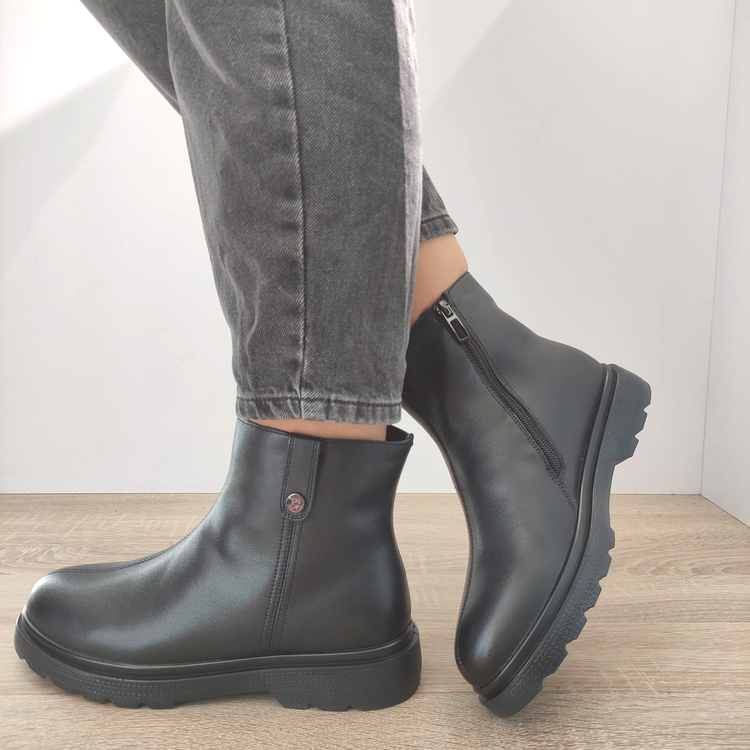 Sistemul de închidere cu fermoar nu doar că facilitează încălțarea și descălțarea, dar adaugă și un element stilistic atrăgător la designul general al ghetei.