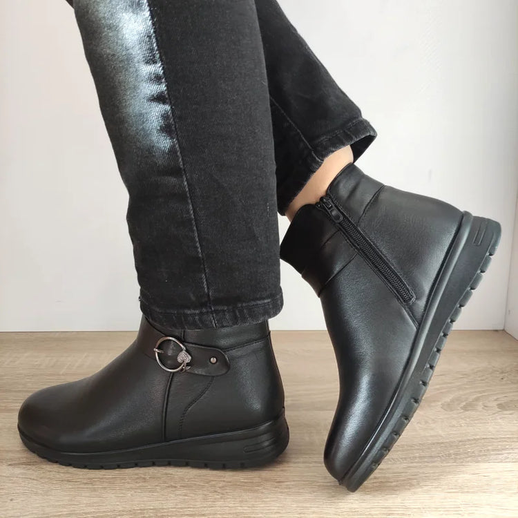 Descriere: Ghete casual de damă Formazione în culoarea neagră, confecționate din piele naturală de înaltă calitate, cu un detaliu metalic elegant pe lateral. Aceste ghete oferă un look modern și confortabil, ideale pentru sezonul rece și pentru completarea ținutelor de zi cu zi.