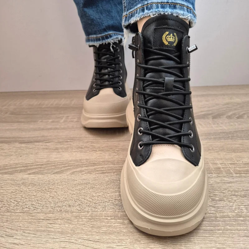 Alege un look modern și confortabil cu ghetele Franco Gerardo 66081, perfecte pentru sezonul rece. Realizate din piele naturală de calitate, acestea combină eleganța cu un stil urban, având un contrast atractiv între negru și bej.