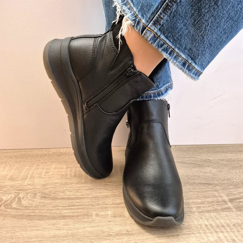 Îmbină confortul și simplitatea cu un design practic, perfect pentru zilele reci. Ghetuțele negre Jana sunt realizate din piele ecologică de calitate, cu fermoare laterale pentru o încălțare rapidă și comodă. Talpa flexibilă oferă stabilitate și confort la fiecare pas, fiind ideală pentru purtare zilnică.