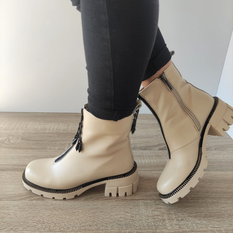 Închiderea cu fermoar nu doar că adaugă un detaliu modern și stilat, dar facilitează și procesul de încălțare și descălțare, ceea ce se traduce printr-o experiență mult mai comodă pentru purtătoare.