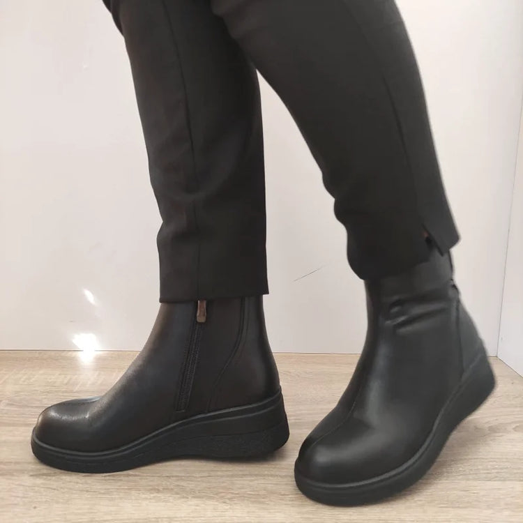 Descriere: Ghete casual de damă, model Karisma 850014A 01-N, confecționate din piele naturală, perfecte pentru sezonul rece. Cu un design simplu și elegant, aceste ghete negre oferă confort și durabilitate. Talpa de 5 cm asigură un plus de înălțime, iar fermoarul lateral permite o încălțare rapidă și comodă. Aspectul minimalist și liniile curate fac din aceste ghete o alegere versatilă pentru diverse ținute casual, aducând un plus de stil și rafinament.