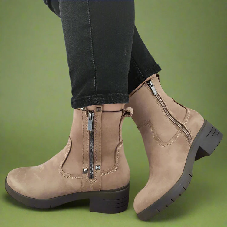 Descriere: Ghete casual de damă, model Marco Tozzi 25008-43, cu un design modern și versatil, realizate dintr-o combinație de piele naturală nubuck și piele ecologică. Aceste ghete în nuanța taupe sunt ideale pentru sezonul rece, oferind confort și durabilitate. Talpa cu toc de 4.5 cm adaugă eleganță și stabilitate, iar fermoarul lateral dublu facilitează o încălțare rapidă. Detaliile metalice și textura de nubuck contribuie la un aspect sofisticat, perfect pentru diverse ținute casual.