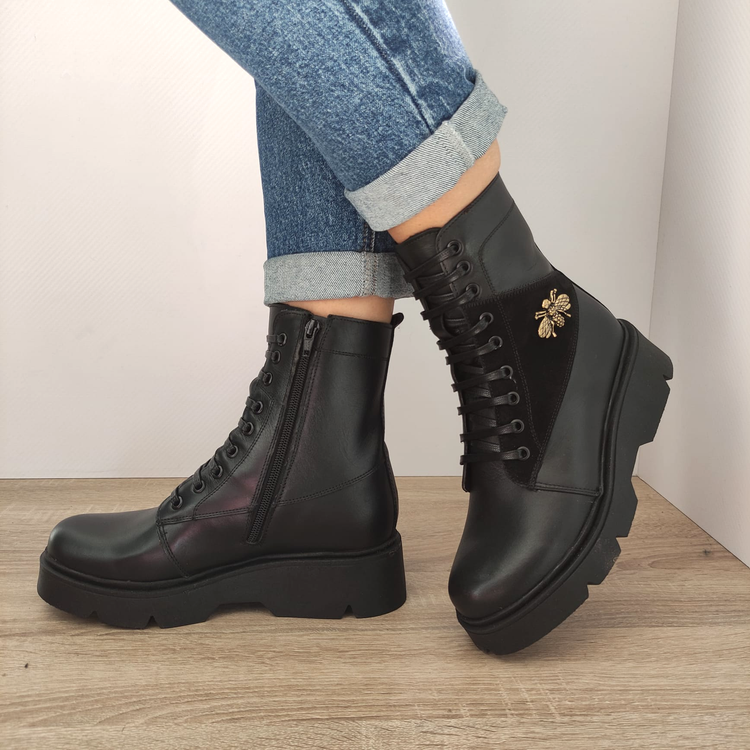 Prin dotarea cu fermoar, încălțarea și descălțarea devin un proces rapid și ușor, permitându-ți să fii gata de plecare în doar câteva momente. Talpa groasă de 5 centimetri oferă o stabilitate crescută și un plus de înălțime, iar faptul că gheata nu are toc accentuează confortul și ușurința de purtare. Cu o înălțime totală de 22,5 centimetri, aceste ghete protejează piciorul și îi oferă suportul necesar.