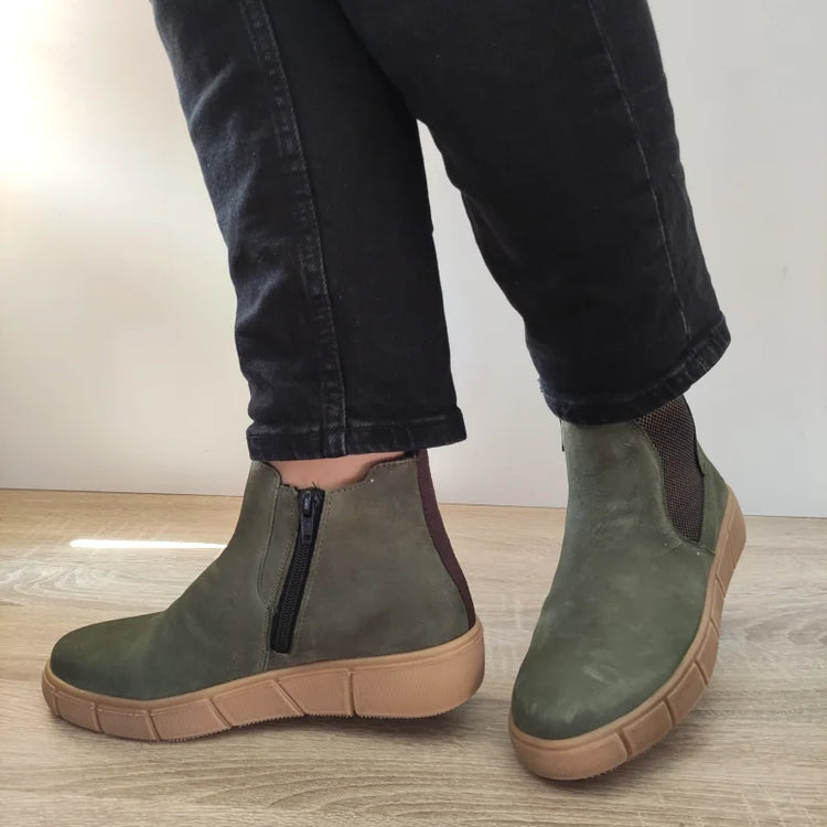 Descriere: Ghete casual din piele naturală nubuck, cu o nuanță modernă de verde, perfecte pentru un look relaxat și stilat. Talpa contrastantă și detaliile laterale elastice oferă confort și un plus de personalitate, fiind ideale pentru ținutele de zi cu zi.