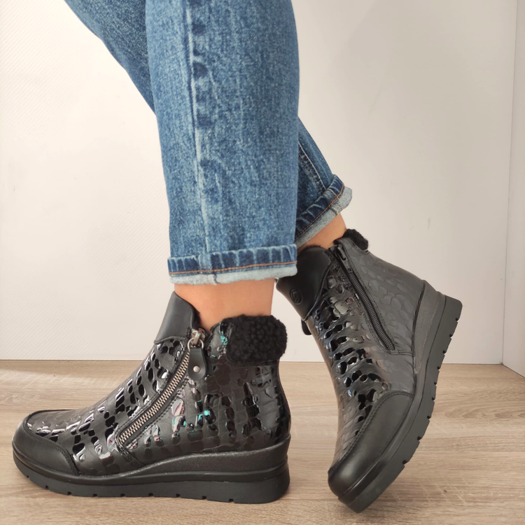 Designul ghetei REMONTE R0775-03 se distinge printr-o estetică casual și versatilă, perfectă pentru orice situație, de la zilele la birou până la escapadele de weekend. Închiderea cu fermoar asigură o încălțare rapidă și confortabilă, transformând aceste ghete în aliații tăi de încredere pentru zilele aglomerate.