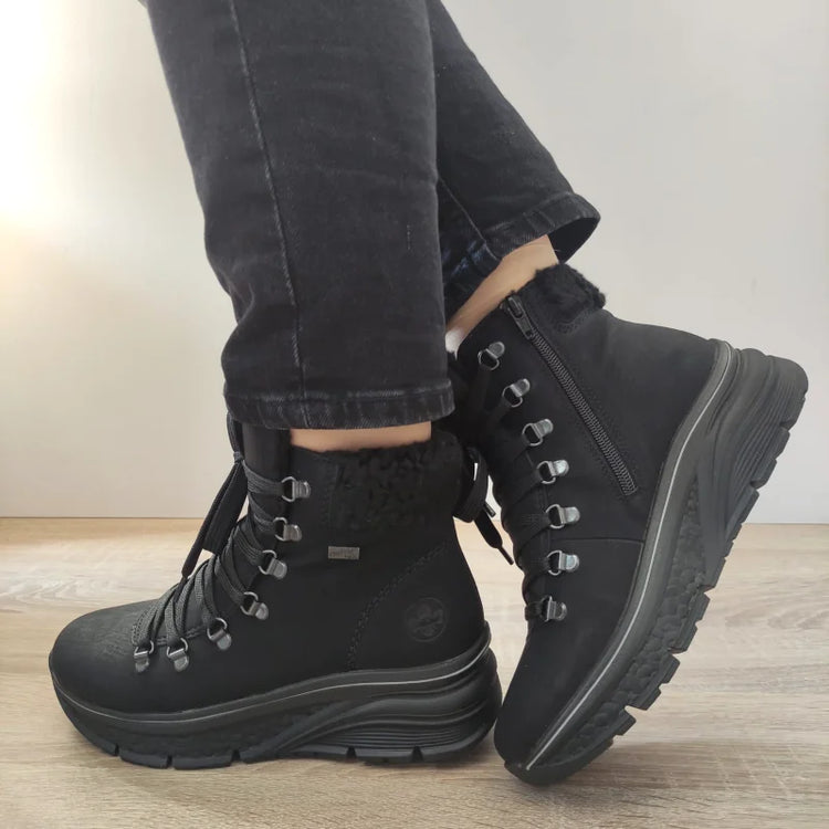 Descriere: Ghete casual din piele ecologică, cu un design robust și detalii funcționale, ideale pentru sezonul rece. Platforma înaltă și șireturile inspirate de stilul montan oferă un plus de stabilitate și confort, în timp ce interiorul călduros asigură protecție împotriva frigului.