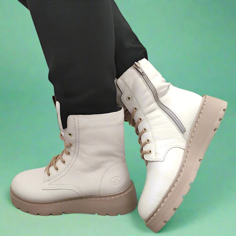 Descriere: Ghete casual din piele naturală și piele ecologică, cu un design modern și detalii contrastante, ideale pentru sezonul rece. Cu o închidere practică pe bază de fermoar și un șiret decorativ, aceste ghete oferă atât stil, cât și confort în purtarea zilnică.