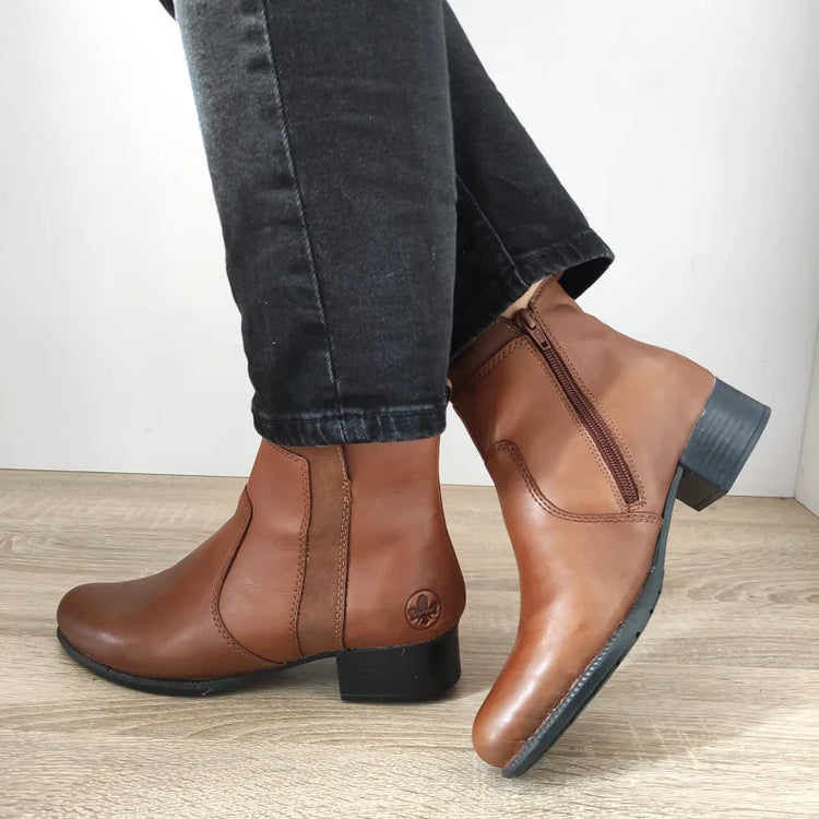 Descriere: Ghete casual din piele naturală, în nuanța elegantă de maro coniac, ideale pentru un look modern și rafinat. Tocul jos și închiderea cu fermoar oferă confort și stabilitate, fiind potrivite pentru purtarea zilnică în sezonul rece.