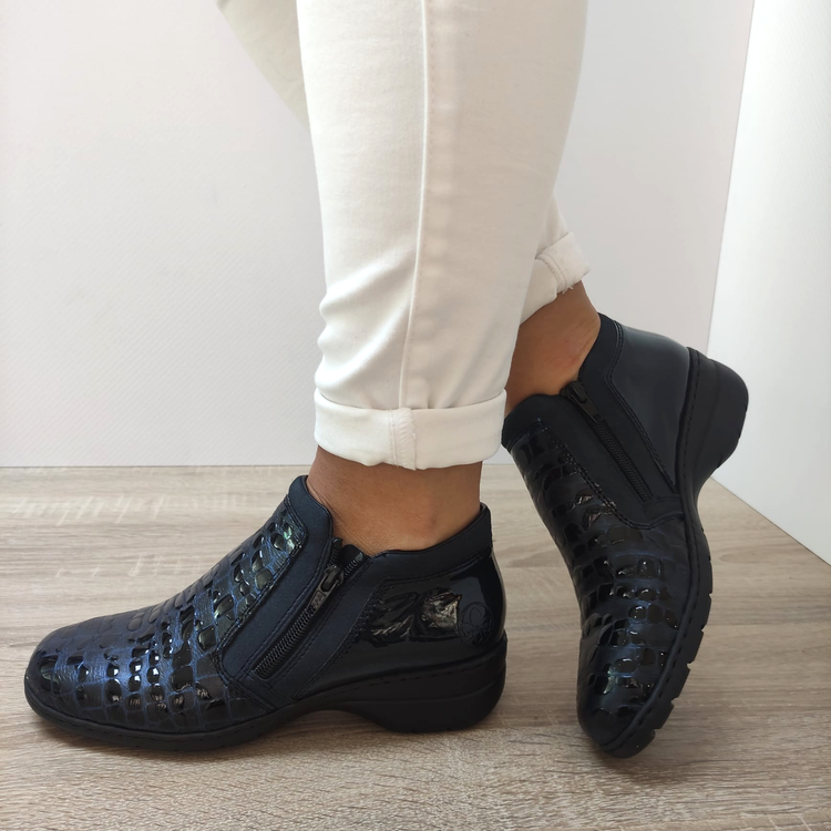 Ghetele casual RIEKER L4382-14 reprezintă îmbinarea perfectă dintre calitate și stil. Realizate din piele naturală și ecologică, acestea asigură durabilitate și un design atrăgător. Fermoarul facilitează purtarea, iar talpa de 4 cm garantează confort pe parcursul întregii zile. Cu o înălțime de 11 cm, sunt perfecte pentru doamnele care apreciază eleganța simplă. Optați pentru RIEKER L4382-14 pentru un look contemporan și confortabil!