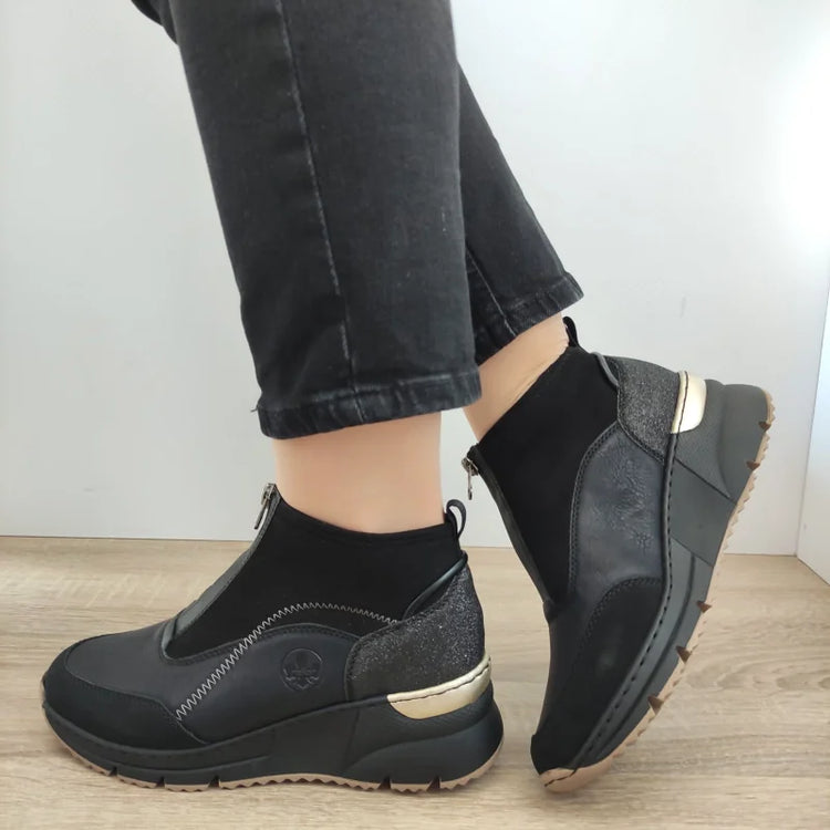 Descriere: Ghete casual din piele ecologică și material stretch, ideale pentru un stil modern și dinamic. Talpa robustă și detaliile elegante oferă confort și un aspect sofisticat, fiind perfecte pentru purtarea zilnică în sezonul rece.