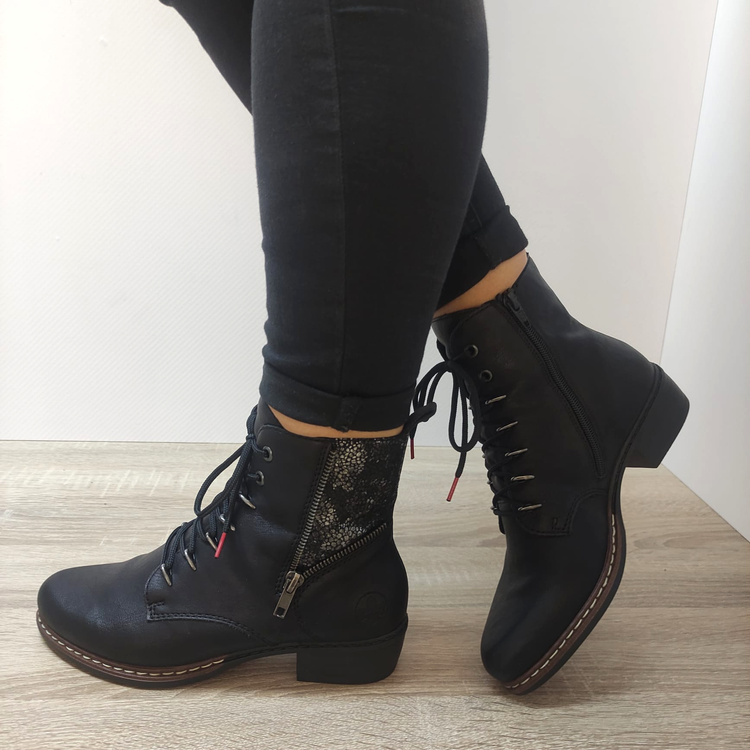 Confortul întâlnește stilul în ghetele casual de damă de la RIEKER, cod produs Y0800-00. Realizate din piele ecologică de calitate, aceste ghete sunt un accesoriu modern și durabil pentru orice ținută casual. Închiderea cu fermoar asigură o încălțare ușoară și practică, iar talpa cu o grosime de 3,5 cm îți oferă suportul necesar pentru o zi întreagă. Cu o înălțime totală de 17 cm, aceste ghete îți vor completa ținuta cu un touch elegant și confortabil. Alege ghetele RIEKER pentru un look mereu în pas cu moda!