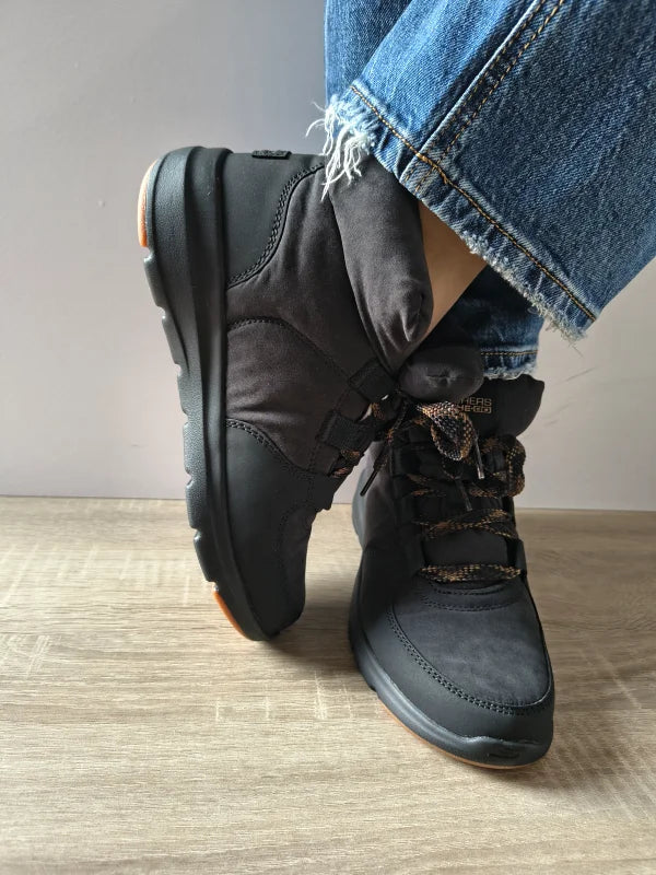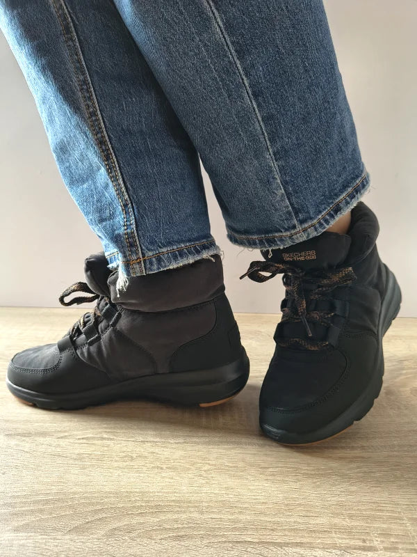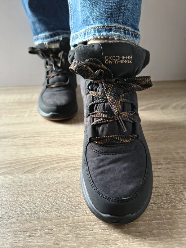 Ghetele Skechers Goga Mat în nuanță de negru sunt concepute pentru confort zilnic și un look modern. Construcția din material textil combinat cu piele ecologică oferă flexibilitate, rezistență și un aspect plăcut. Talpa moale cu tehnologia Air-Cooled Goga Mat asigură amortizare excelentă și confort la fiecare pas, iar sistemul cu șireturi permite o ajustare optimă pentru fixare sigură. O pereche perfectă pentru ținute casual și zile active în sezonul rece.