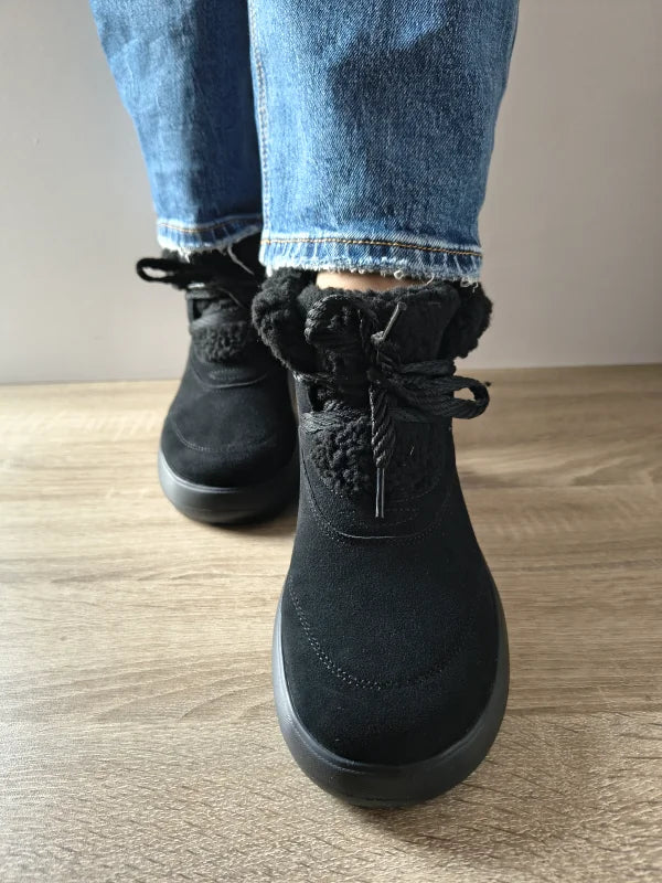 Ghetele Skechers Arch Fit în nuanță de negru sunt create pentru confort absolut și versatilitate în zilele reci. Combinația de piele naturală întoarsă și material textil oferă un aspect rafinat și o senzație plăcută la purtare. Talpa ergonomică cu tehnologia Arch Fit certificată de podiatru oferă susținere superioară pentru arcada piciorului, iar stratul Scotchgard protejează materialul de umezeală și pete. Sistemul cu șireturi permite o ajustare precisă și fixare confortabilă.