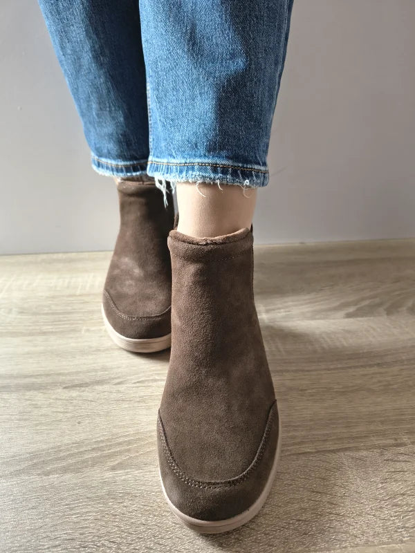 Ghetele Skechers Arch Fit în nuanța caldă de maro îmbină perfect confortul cu designul urban. Realizate din piele naturală întoarsă, acestea oferă o senzație moale la atingere și o ținută elegantă, potrivită pentru zilele reci. Talpa ușor înălțată, cu sistem Arch Fit certificat de podiatru, asigură susținerea optimă a arcadei plantare, în timp ce lateralele elastice permit încălțarea rapidă. O alegere excelentă pentru plimbări relaxate și confort zilnic.
