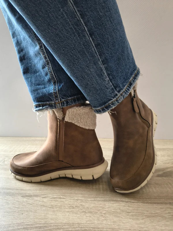 Ghetele Skechers în nuanță de maro chestnut sunt alegerea perfectă pentru zilele reci, oferind confort, stil și protecție. Realizate din piele ecologică, acestea au un design practic și modern, cu închidere laterală prin fermoar pentru o încălțare rapidă. Talpa moale, echipată cu Warm Tech Memory Foam, asigură amortizare și menține confortul termic, iar tratamentul Water Repellent protejează împotriva umezelii ușoare.