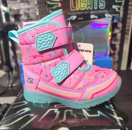 Transformă fiecare pas al celor mici într-o joacă plină de culoare cu aceste ghete Skechers Lights. Realizate din piele ecologică, ghetele combină nuanțe vibrante de roz și multicolor cu detalii luminoase care atrag toate privirile. Sistemul de închidere cu Velcro (scai) le face ușor de încălțat și reglat, fiind ideale pentru copii energici și dornici de aventură.