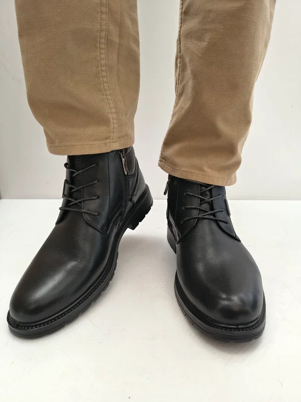 Ghetele Otter 570010A 01-N oferă un aspect rafinat și confortabil, potrivit pentru ținutele business sau elegante de zi cu zi. Confecționate din piele naturală de calitate superioară, acestea se remarcă prin finisajul neted și detaliile discrete din zona gleznei. Închiderea practică cu fermoar lateral facilitează încălțarea rapidă, iar talpa flexibilă oferă stabilitate și confort în timpul mersului. Nuanța negru intens le face ușor de asortat în orice context elegant.